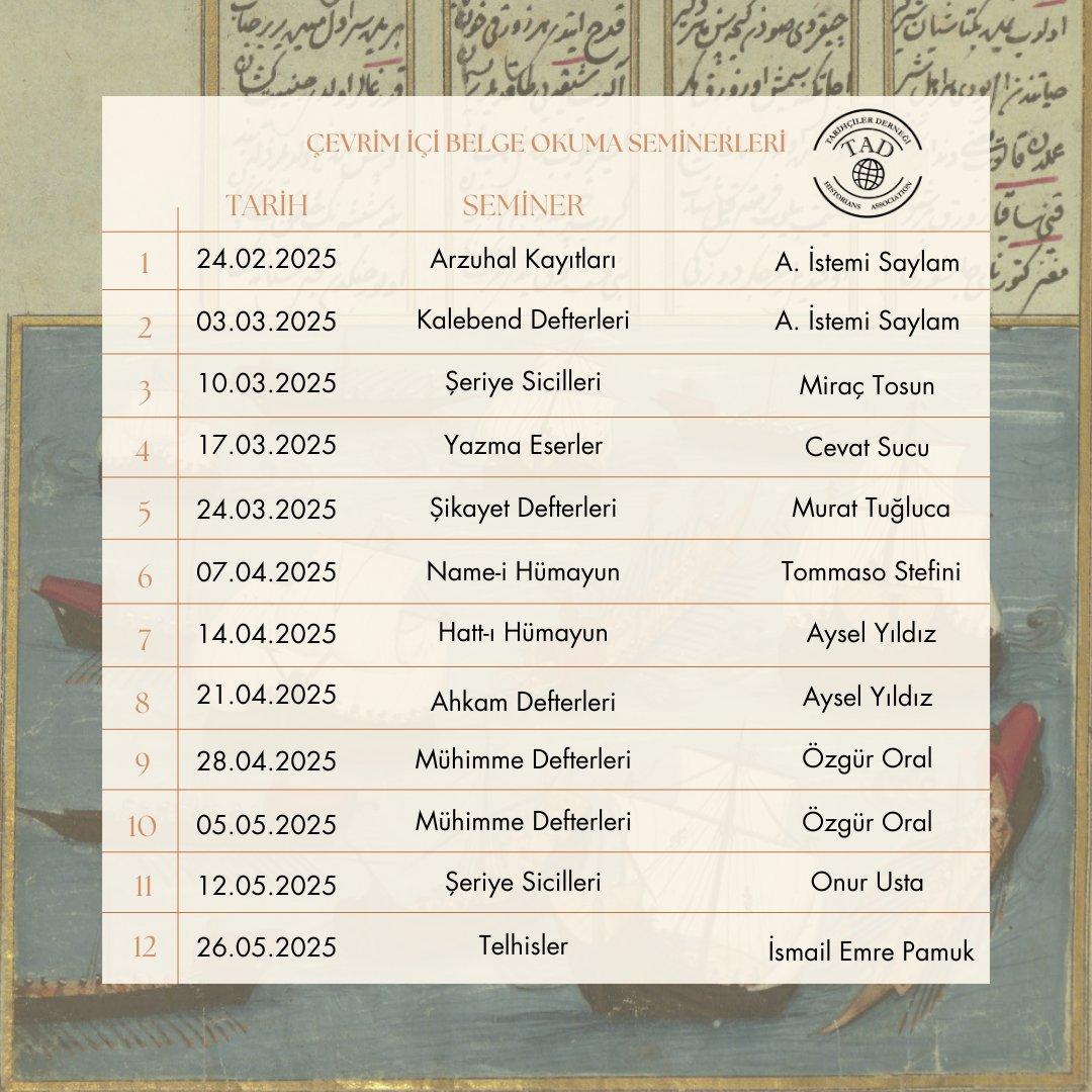 Bölümümüz öğretim elemanlarından Prof. Dr. Murat Tuğluca, Tarihçiler Derneği ile birlikte Osmanlı Belgelerini Okuma Seminerlerine katkıda bulunmuştur.